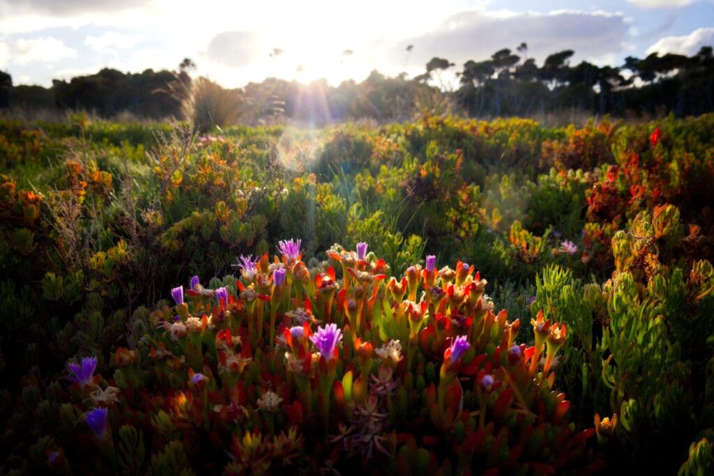 Once on the island, you’re rewarded with a sweeping ecological tapestry. Beaded and Shrubby Glassworts, Pigface, Austral Seablite, Swamp Paperbark, Austral Brooklime, native grasses and White Mangrove forests paint the landscape in shifting tones of green, red, silver and gold.