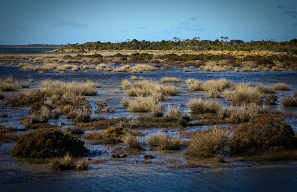 Framed by Wilson’s Promontory to the south and South Gippsland’s green hills to the north, the 72-ha Bullock Island presents a rich tapestry of native grasses, salt-tolerant shrubs, Swamp Paperbark and colourful succulents, such as Beaded and Shrubby Glassworts, Pigface, Austral Seablite and Austral Brooklime.